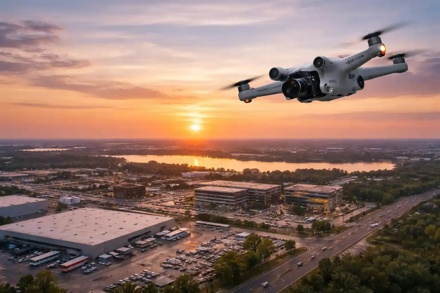 Ujęcia z drona pokazują siedzibę, halę, magazyn, teren lub inwestycję w sposób, którego nie da się osiągnąć klasycznym kadrem z ziemi.